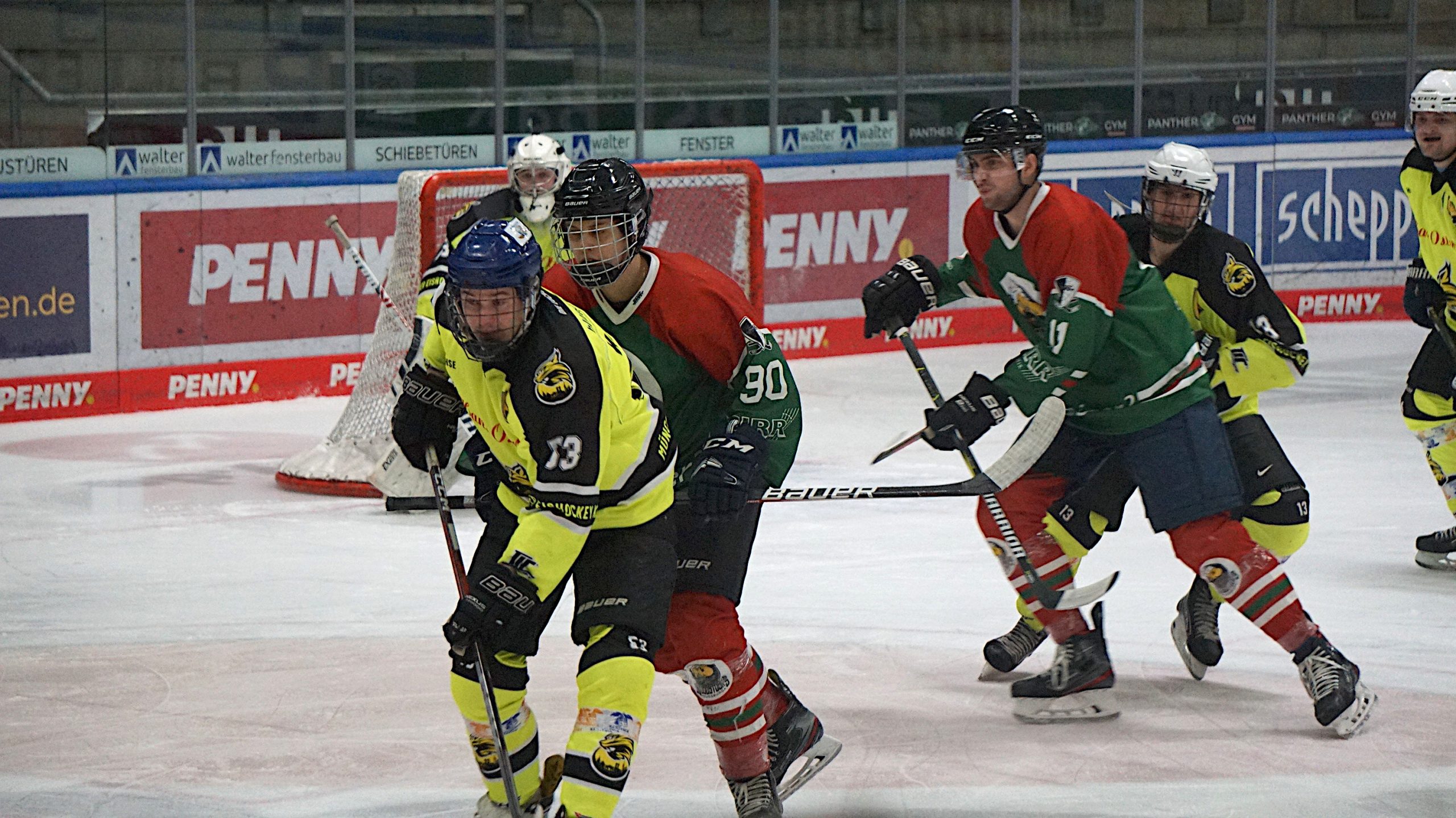 Nach etwa zehn Minuten kam auch die Offensive der Gäste langsam in Fahrt. Die Woodstocks zeigten sich anfällig für schnelle Gegenangriffe, und die Luchse machten sich diese Schwachstelle schnell zu Nutzen. Die aufgrund des verletzungsbedingten Ausfalls von Edgars Opulskis neu formierte erste Reihe der Münchner konnte sich zwei absolute Hochkaräter erarbeiten. Zunächst überlief Yehor Vinnytskyi auf dem rechten Flügel all seine Gegenspieler, hob den Puck allerdings mit der Rückhand über das gegnerische Tor. Wenig später fuhr Felix Klein einen fast komplett identischen Angriff. Der im Nachwuchs des Augsburger EV ausgebildete Felix sprintete ebenfalls über die rechte Seite auf den gegnerischen Torhüter zu, scheiterte aber mit seinem Rückhandschuss an Torwart Davide Olivieri. Bitter für Felix, der die große Chance hatte, bei der Rückkehr in sein ehemaliges Wohnzimmer auf vertrautem Eis ein Tor zu bejubeln. So blieb es jedoch nach zwanzig Minuten bei einem torlosen Unentschieden.