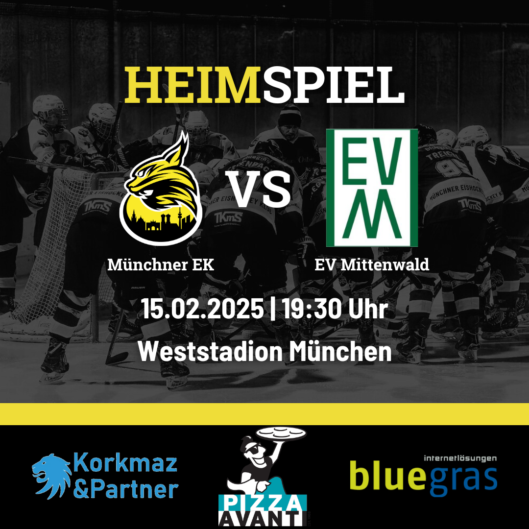 Das Spiel gegen den EV Mittenwald am Samstag, dem 15. Februar 2025, beginnt um 19:30 Uhr im Weststadion München.