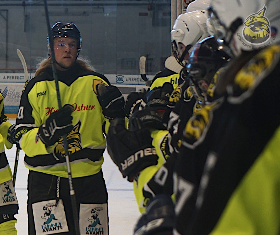 Das letzte Drittel begann so, wie der Mittelabschnitt endete, nämlich mit einem Tor für den MEK. Luis Stroppe nutzte die numerische Überzahl und sorgte für den 4-4 Ausgleichstreffer. Lange konnten sich die Münchner jedoch nicht am Unentschieden erfreuen. Zweieinhalb Minuten später brachte Verteidiger Alexander Imiolek die Löwen wieder in Führung. Mit dem Vorsprung im Rücken spielten die Gastgeber die Partie jedoch nun nicht herunter, sondern verloren sich in Undiszipliniertheiten. Nach einer bereits angezeigten kleinen Strafe buchte Martin Hagemeister mittels Beschwerde bei den Referees erfolgreich eine Erhöhung des Strafmaßes auf 2+2+10 Minuten. In der vierminütigen Überzahl erspielten sich die Landeshauptstädter einige Chancen, ehe es schließlich Simon Klopstock war, der das 5-5 markierte. Nun ging es schnell, denn nur eine Minute später stand es dank eines weiteren Treffers von Luis Stroppe 5-6. Wendepunkt? Denkste! Tobias Jakob und Sebastian Mair unter den Eggen schnürten innerhalb von 28 Sekunden einen Doppelpack und stellten das Spiel erneut auf den Kopf. Sechs Tore in den ersten zehn Minuten des Drittels, und doch waren wir wieder dort, wo wir zum Anpfiff standen – Vorteil Gastgeber mit einem Tor Vorsprung. Nach ihrem siebten Streich erweckten die Löwen über einige Minuten den Anschein, die Begegnung nun locker von der Uhr spielen zu können. Als fünf Minuten vor Ende zu allem Überfluss auch noch Leon Axtner auf die Strafbank musste, sah es so aus, als könnten sich die Industriestädter nur noch selbst schlagen. Nahezu wie aufs Wort wanderte dreißig Sekunden später Christof Hradek auf die Strafbank, und eine weitere Minute später wurde Niclas Hundseder wegen unsportlichen Verhaltens auf die Kühlbox geschickt. Die Luchse agierten plötzlich in doppelter Überzahl und konnten dem Abend tatsächlich noch eine weitere Wendung geben. Simon Klopstock brachte die Scheibe von der blauen Linie aufs Tor, Yehor Vinnytskyi hielt den Schläger rein, und der Puck schlug drei Minuten vor Ende zum 7-7 im Tor ein. Nachdem in den verbleibenden drei Minuten für dieses Spiel untypischerweise keine weitere Wendung mehr auf die Zuschauer wartete, ging es ins Penaltyschiessen. Dort brachte Maximilian Deutzmann die Luchse in Durchgang eins in Führung. Die Gastgeber starteten den zweiten Durchgang mit einem Treffer von Mair unter den Eggen erfolgreich, allerdings war auch Simon Klopstock erfolgreich. Paul Hipentinger musste mit Penalty Nummer drei treffen, um den Abend noch weiter zu verlängern, doch Tamino Kaut konnte den Versuch abwehren und hielt somit den spektakulären wie überraschenden 7-8 Erfolg seiner Mannschaft fest.