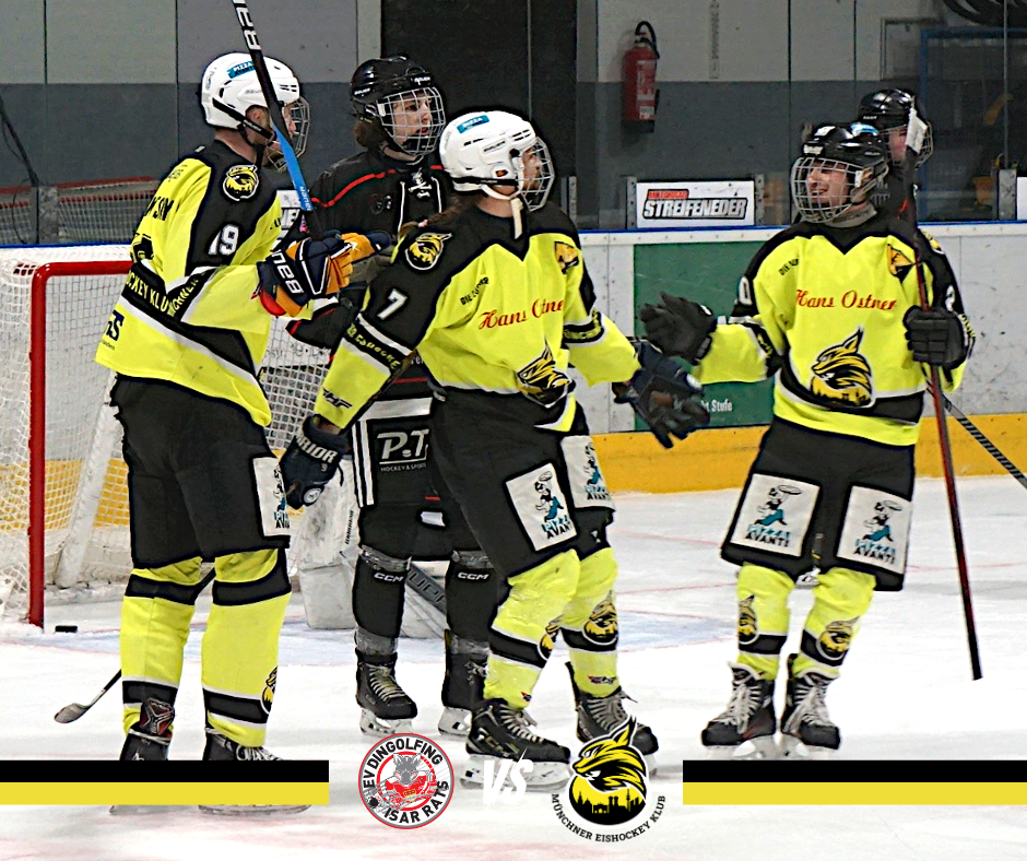 Für die Erste des Münchner EK gab es zum Saisonende nochmal etwas zu feiern. Zum einen holte das Luchsrudel einen 3-9 (1-2, 1-5, 1-2) Kantersieg beim EV Dingolfing 1B, und zum anderen zogen die Landeshauptstädter im letzten Moment am ESV Dachau vorbei und beenden die Saison auf dem fünften Tabellenplatz.