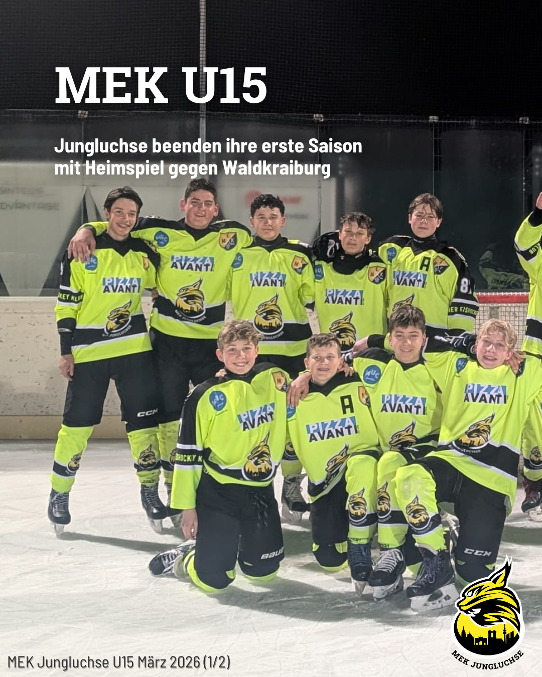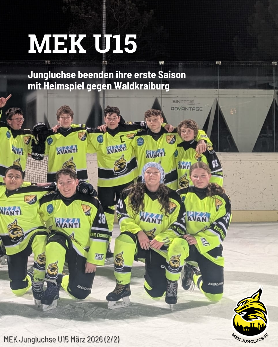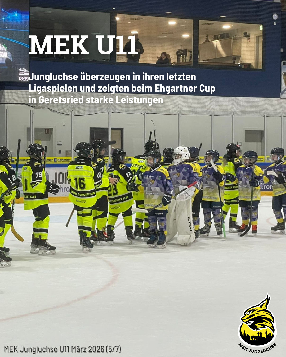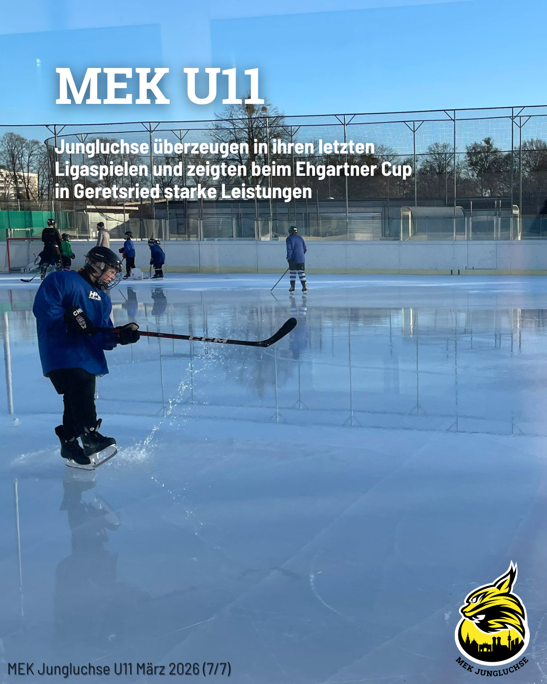 Am 07.03.26 lud die U15 der Jungluchse zum letzten MEK-Heimspiel der Saison 2025/26 ein. Ursprünglich für den Mittag angesetzt, musste die Partie witterungsbedingt auf den Abend verschoben werden. Hier geht ein Dankeschön an unsere Gäste für ihr spontanes Entgegenkommen.